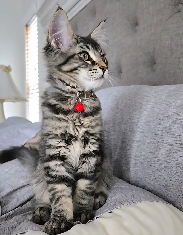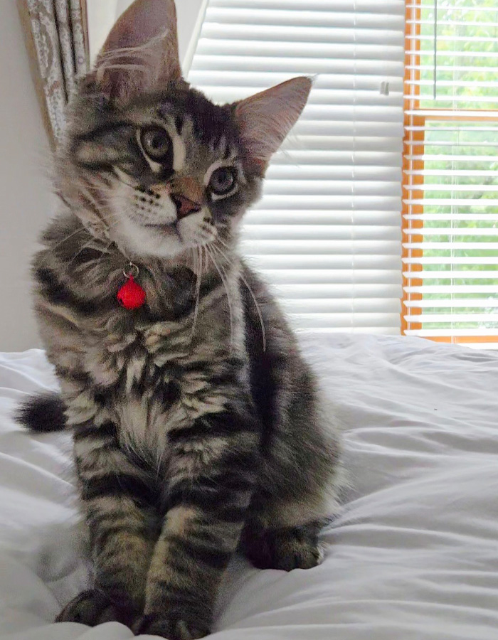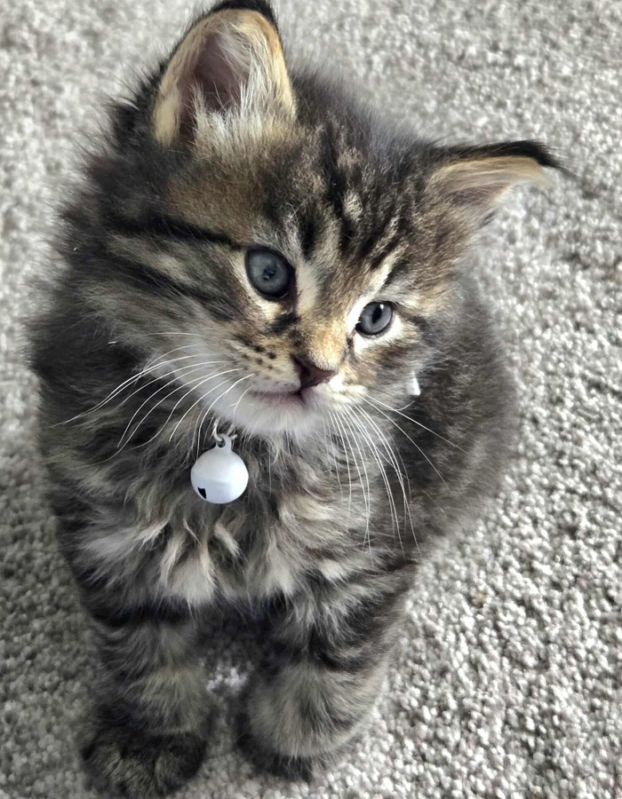 Personality: Easygoing temperament and very playful. He enjoys cuddles and gentle strokes, often purring softly, but they’re also content just being near you.