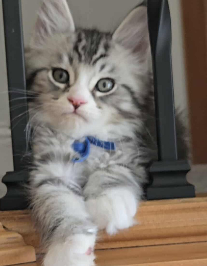 Personality: This kitten is a fearless ball of energy – leaping, pouncing, and exploring everything without hesitation. Bold, playful, and always on the move, he turns every moment into an adventure!.